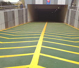 待防滑层表干后,用普通喷雾器对整个车库坡道施工面喷涂专用丙烯酸聚氨酯养护剂养护。目的是延缓施工面的里干速度,增强抗压性能,坡道耐磨性能。